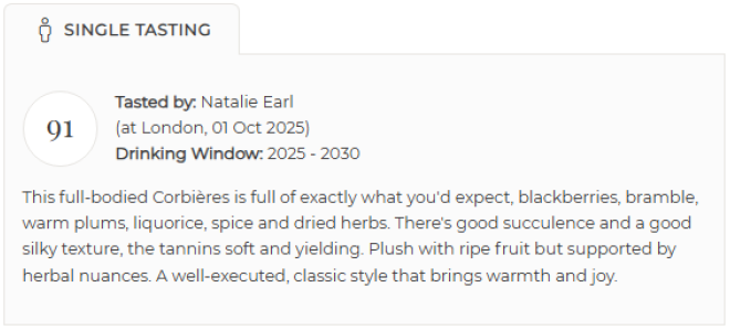 Une belle robe rouge rubis, ce vin séduit dès le premier regard. Le nez est délicatement parfumé avec des arômes de violette et de menthe agrémentés de note de curcuma et laurier. Des notes de cuir complètent ce bouquet. En bouche, l’attaque est fraîche, les tanins sont élégants, et l’ensemble bien équilibré. On y découvre d’abord la groseille et la pâte de coing, pour finir sur des notes tourbées. La finale s’étire sur des accents minéraux, comme la graphite, et une touche boisée portée par des fruits à coque. Un vin singulier, profond, qui révèle toute sa personnalité au fil de la dégustation.